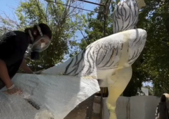 براساس آنچه همایون توسلی از هنرمندان مجسمه ساز در صفحه شخصی خود منتشر کرده، کار تراش اولیه مجسمه خروسِلاری به سفارش شهرداری لار در حال انجام است. ف ۱۱۰