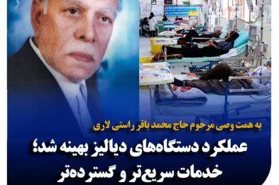 با توجه به ارائه خدمت روزانه به بیماران دیالیزی آن شهرستان و لزوم راه اندازی سریع این بخش در بیمارستان، در همان مکان و با دستور محسن سلمان پور، صالح مهی زاده، مسئول تجهیزات پزشکی مرکز آموزشی امام رضا(ع) لارستان به محل احضار شد و راه اندازی بخش دیالیز به عنوان دستور کار هفته پیش روی وی تعیین گردید.
