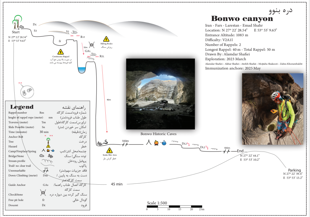 نقشه کامل دره بنوو واقع در جبهه جنوبشرقی غار باستانی بنوو در عمادشهر، توسط باشگاه درهنوردی پردیس لارستان در خردادماه ۱۴۰۴ منتشر شد.