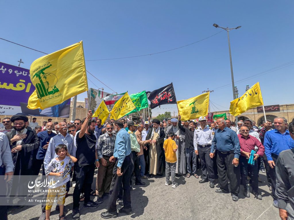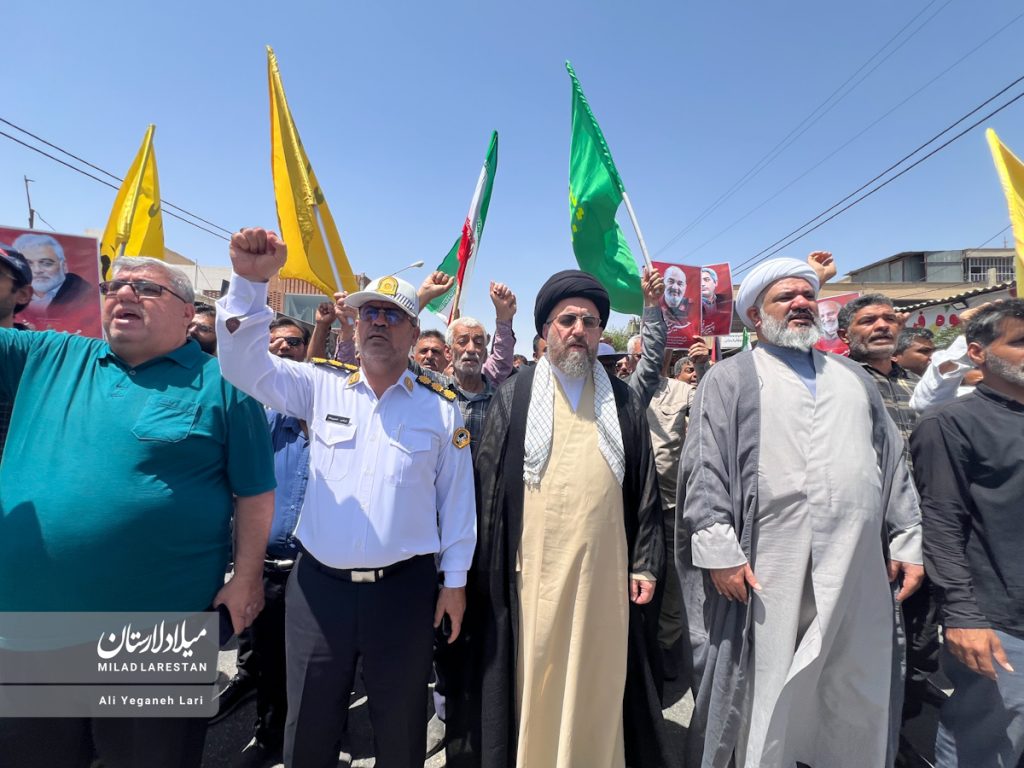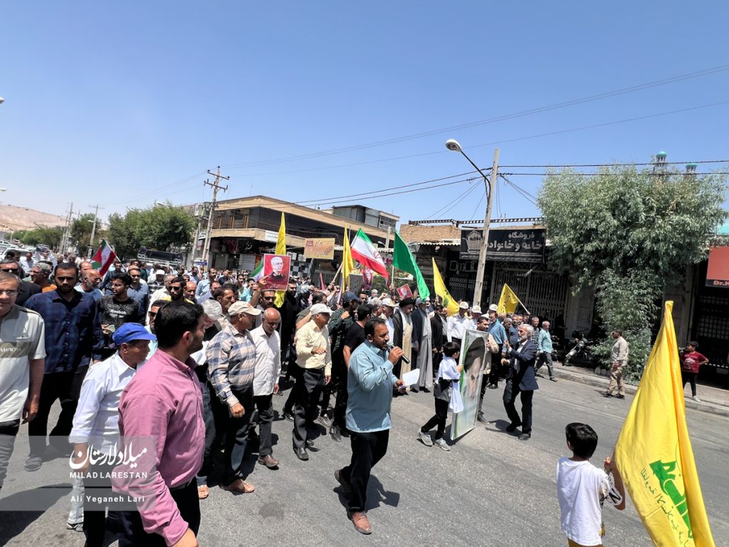 در جمعه ای که گذشت لارستانی ها همنوا با کل کشور و یک صدا پای وطن در جمعه خشم حضور یافته و انزجار خود را از رژیم پلید آمریکا و اسرائیل ابراز نمودند. تصاویر علی یگانه لاری – فرزاد عباسیان از این مراسم را در ادامه می بینیم: