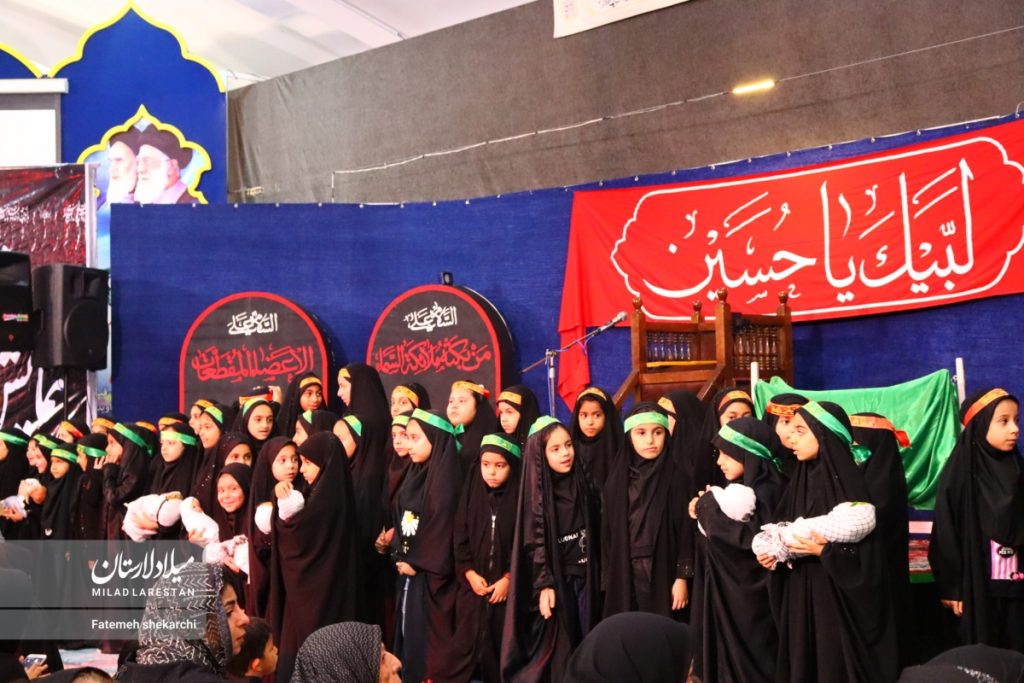 در این آیین معنوی، مادران عزادار به همراه شیرخوارگان خود، با نیت همدلی با حضرت رباب (س) و یاد مظلومیت حضرت علیاصغر (ع)، در فضای مملو از شور حسینی، به عزاداری پرداختند.
