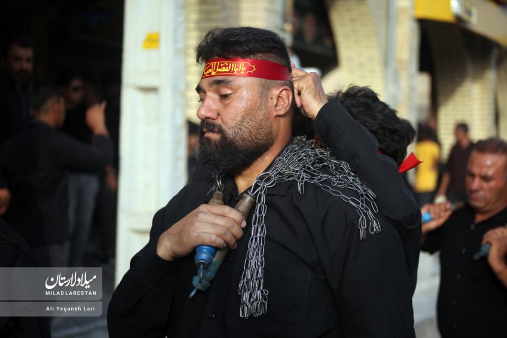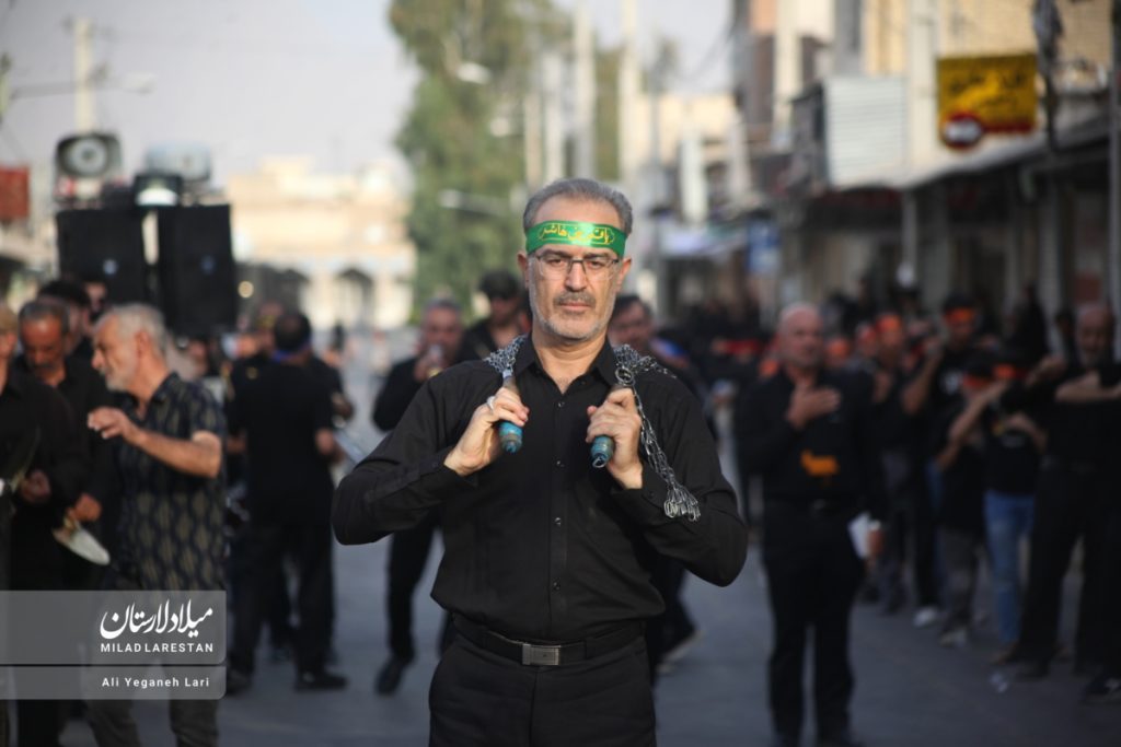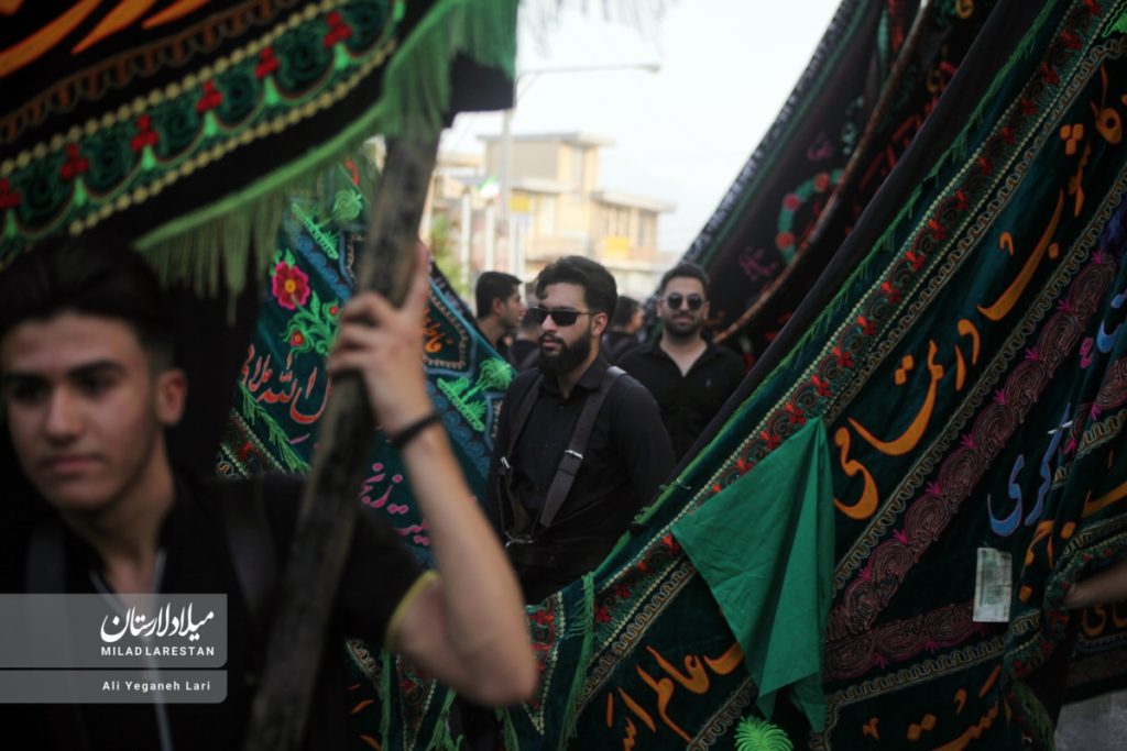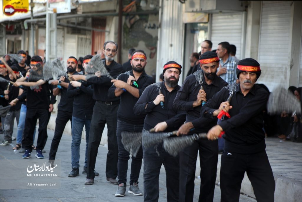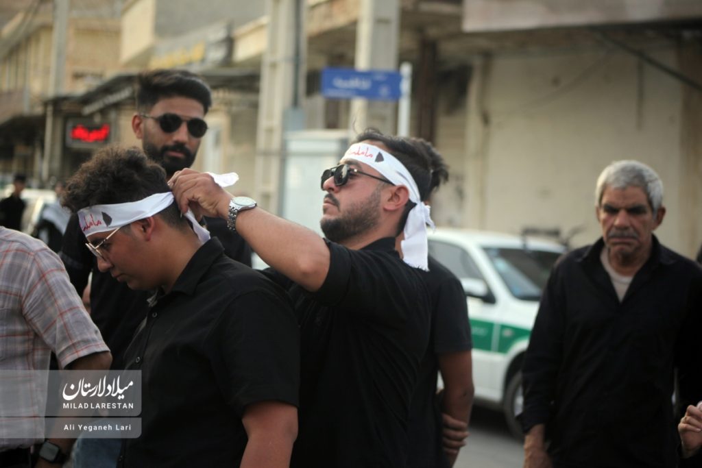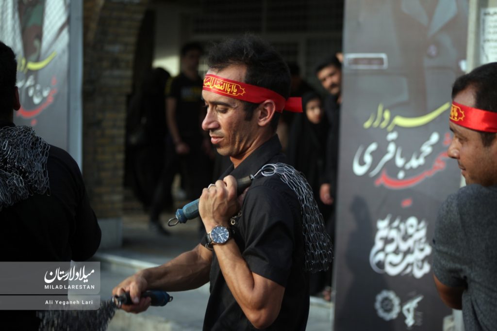 آئین سوگواری حضرت ابا عبدالله الحسین علیه السلام همزمان با روز تاسوعای حسینی ماه محرم سال ۱۴۴۷ هجری قمری(۱۴۰۴ هجری شمسی) بشکلی حماسی و باشکوه برگزار شد. در تعدادی تصاویر از ابراز ارادت مردم شهر لار به مقام والای حضرت سیدالشهداء را از لنز دوربین علی یگانه لاری میبینیم: