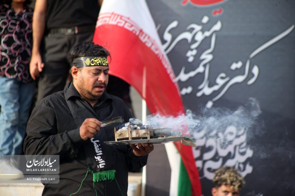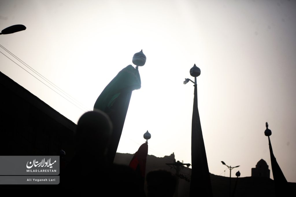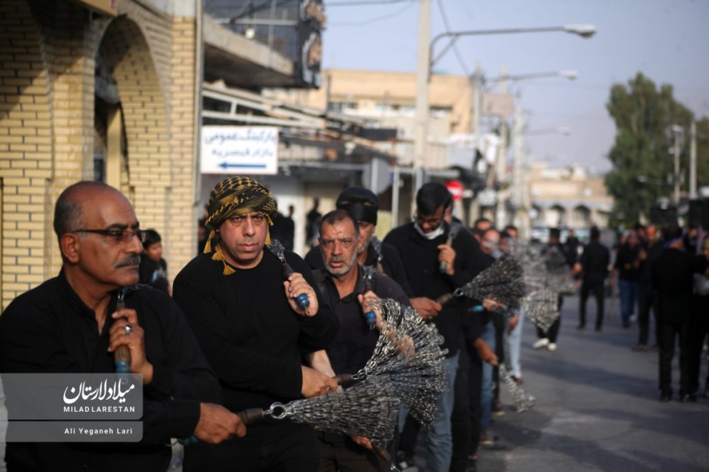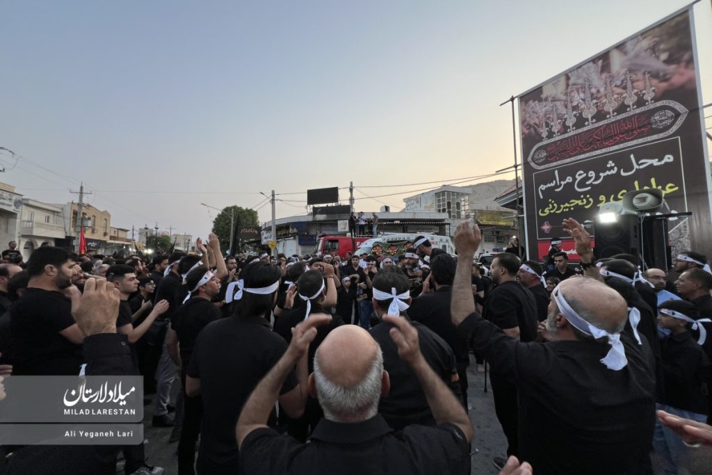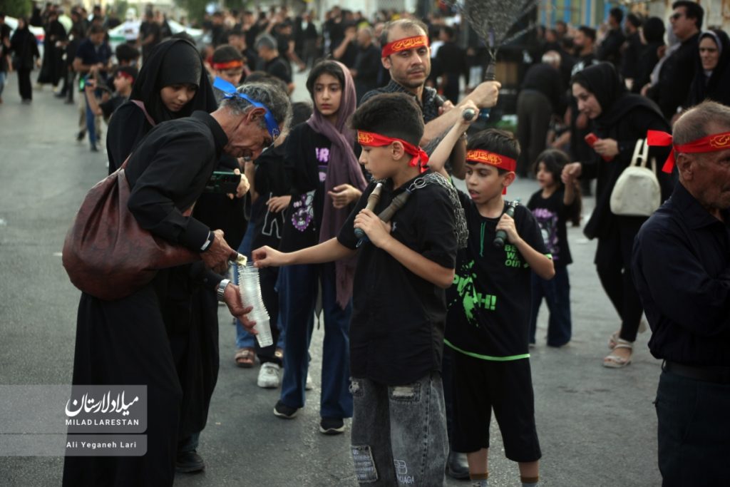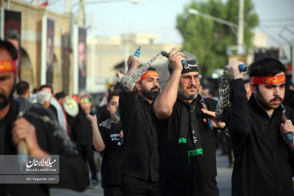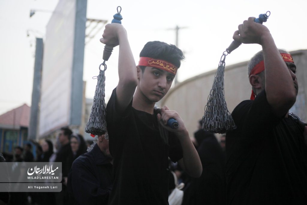 آئین سوگواری حضرت ابا عبدالله الحسین علیه السلام همزمان با روز تاسوعای حسینی ماه محرم سال ۱۴۴۷ هجری قمری(۱۴۰۴ هجری شمسی) بشکلی حماسی و باشکوه برگزار شد. در تعدادی تصاویر از ابراز ارادت مردم شهر لار به مقام والای حضرت سیدالشهداء را از لنز دوربین علی یگانه لاری میبینیم: