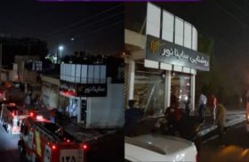این حادثه بدلیل اتصالی برق بوقوع پیوست که منجر به حریق قسمتی از مغازه گردید.