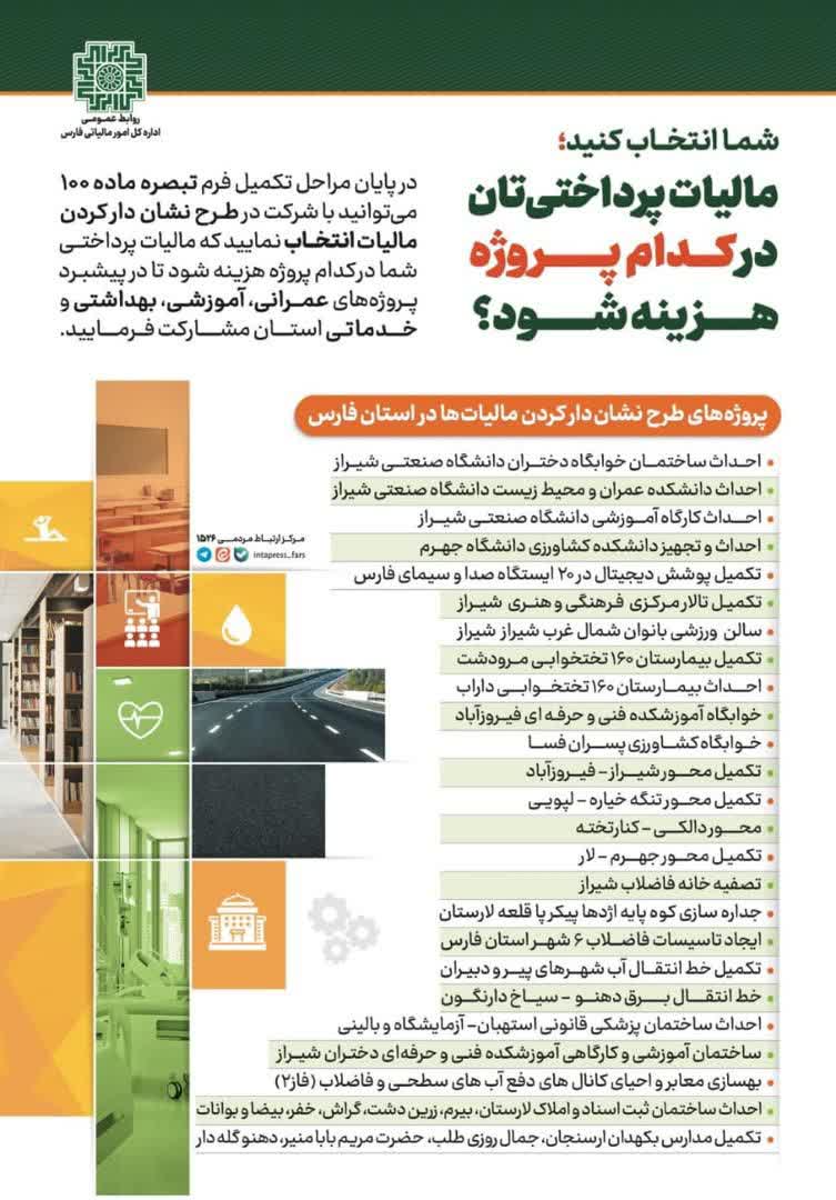 با انتخاب این گزینهها در زمان پرداخت مالیات به تکمیل طرحهای مذکور کمک کنید.