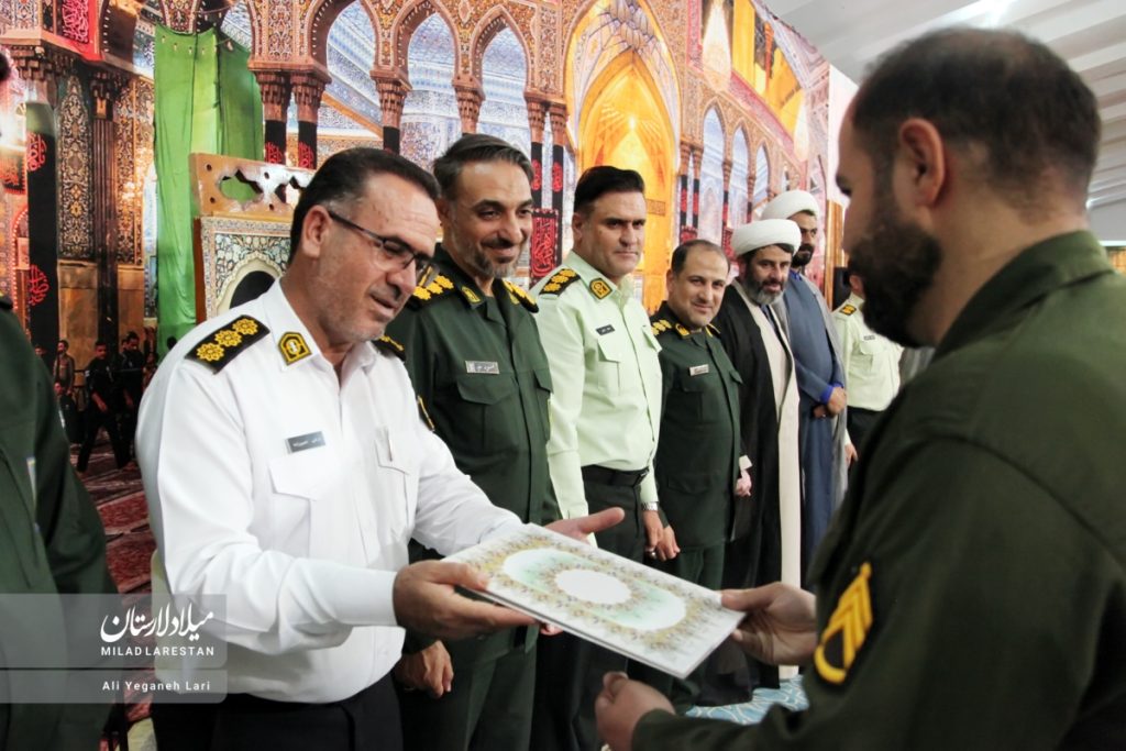 در پایان مراسم، از سربازان نمونه یگانهای نظامی و انتظامی لارستان با اهدای لوح سپاس، هدایا و تندیس یادبود تجلیل بهعمل آمد.