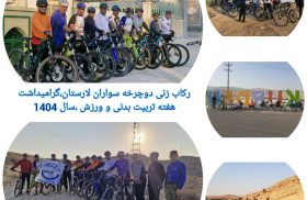 دوچرخه سواران لارستانی به مناسبت گرامیداشت هفته تربیت بدنی و ورزش مسیر رفت و برگشت لار-کورده(کوه رادار) ،به مسافت 78 کیلومتر را رکاب زدند.
