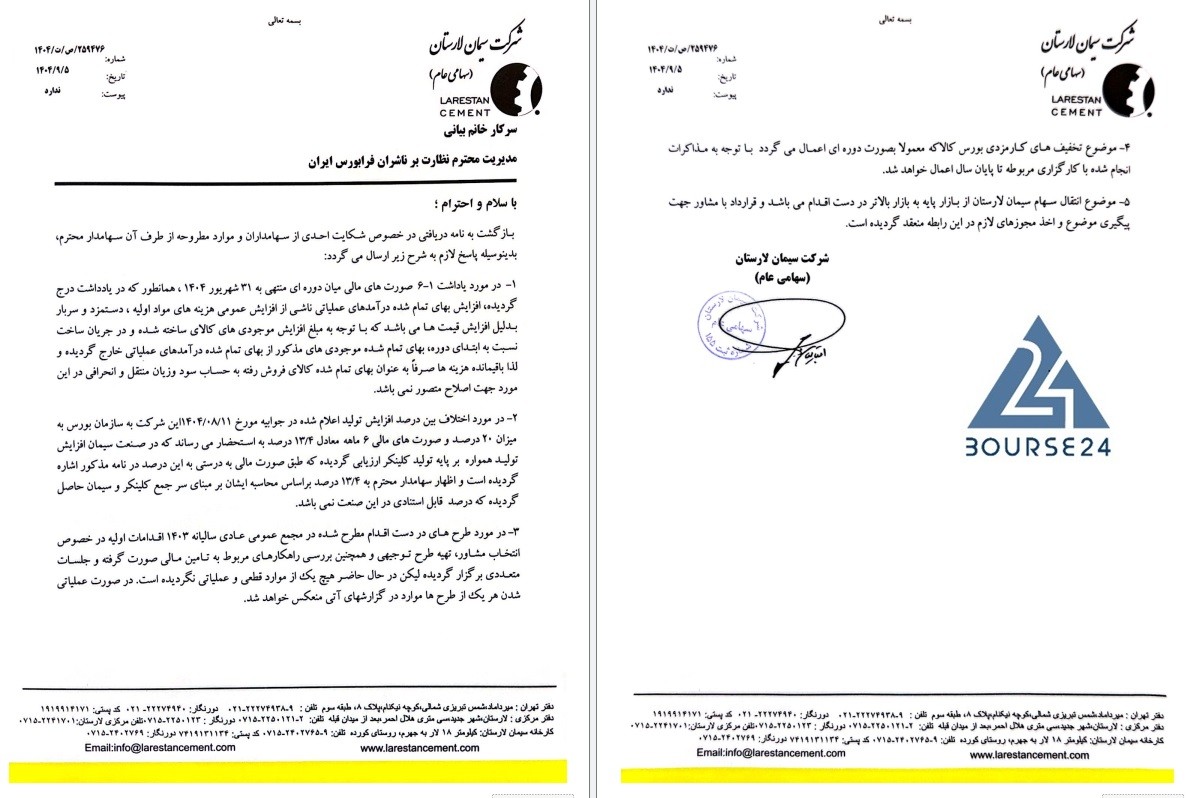 شرکت سیمان لارستان در خصوص برخی موارد عملکرد شفاف سازی نمود.
