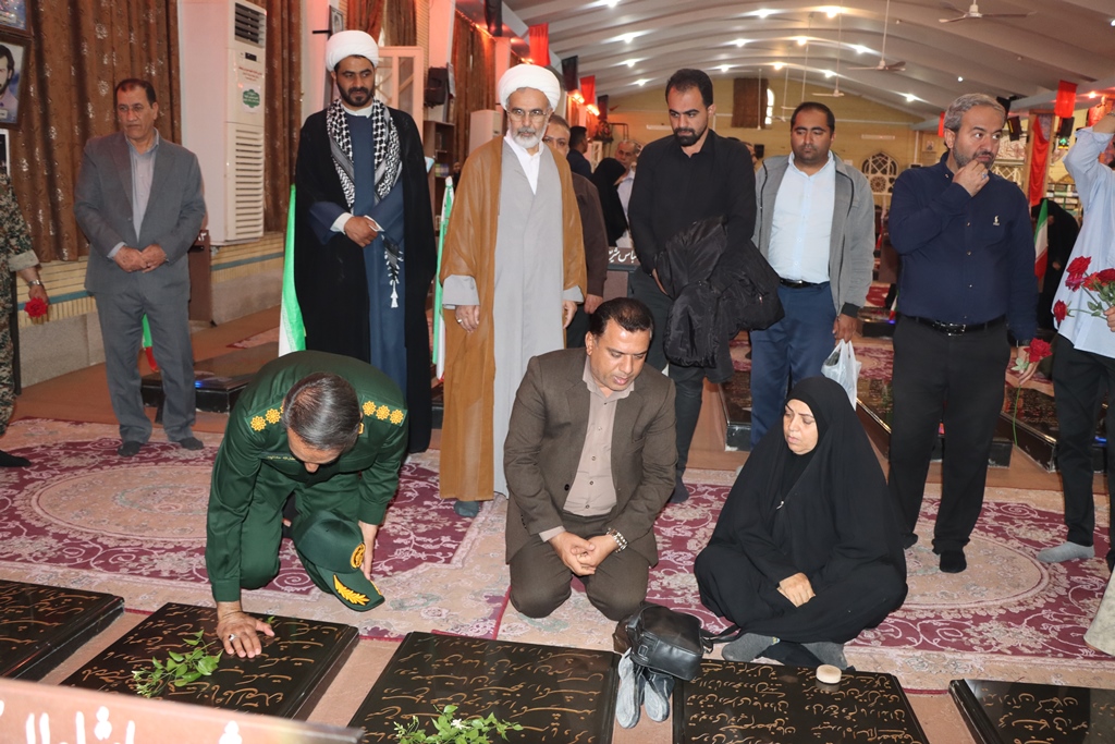 در ادامه نیز بسیجیان به همراه مسئولین شهرستان، قبور مطهر شهدا شهر لار را گلباران و عطرافشانی کردند.