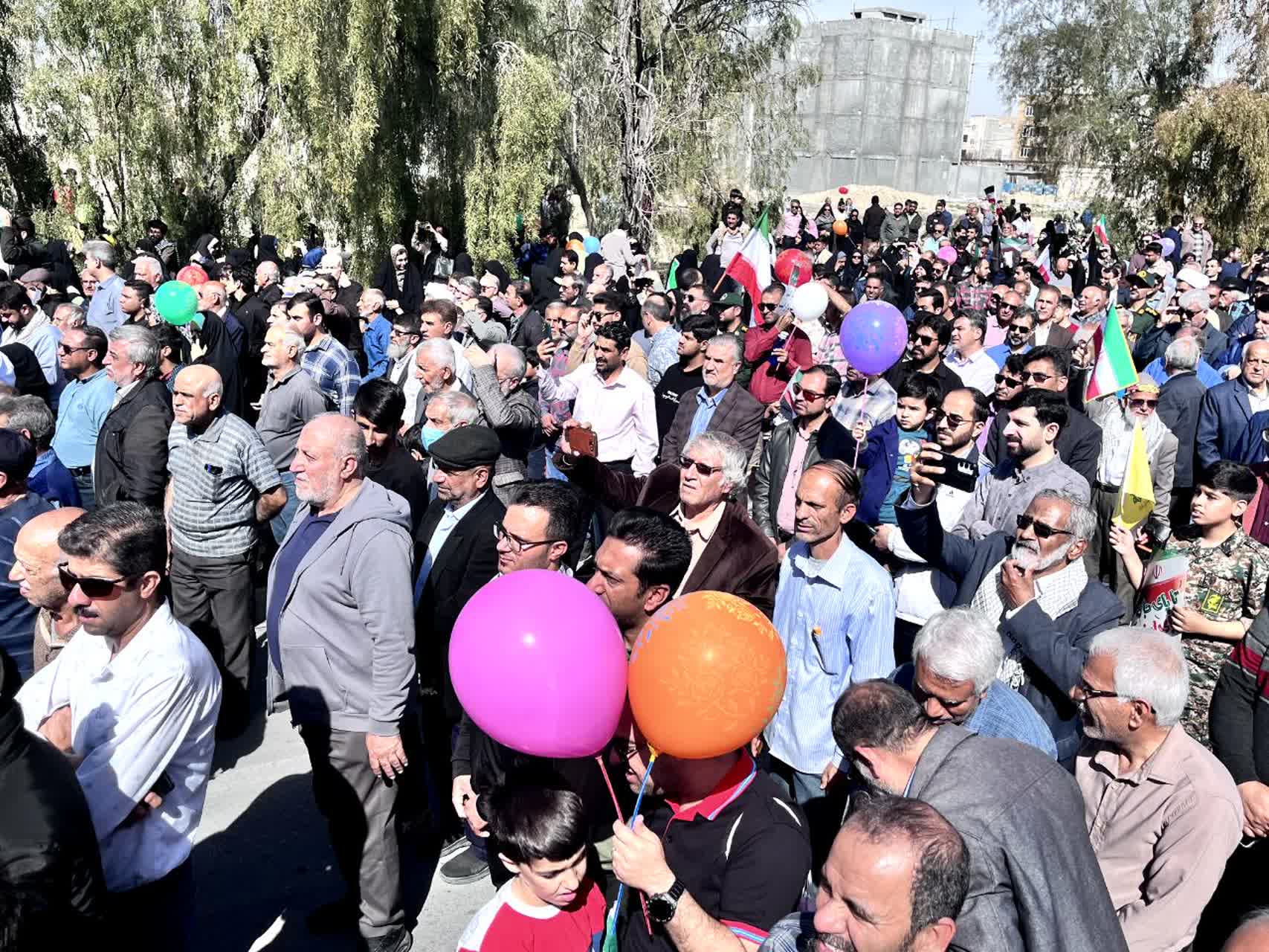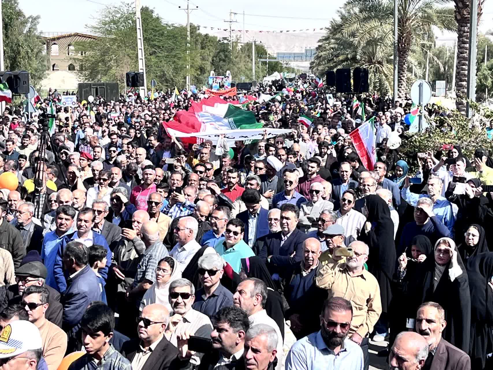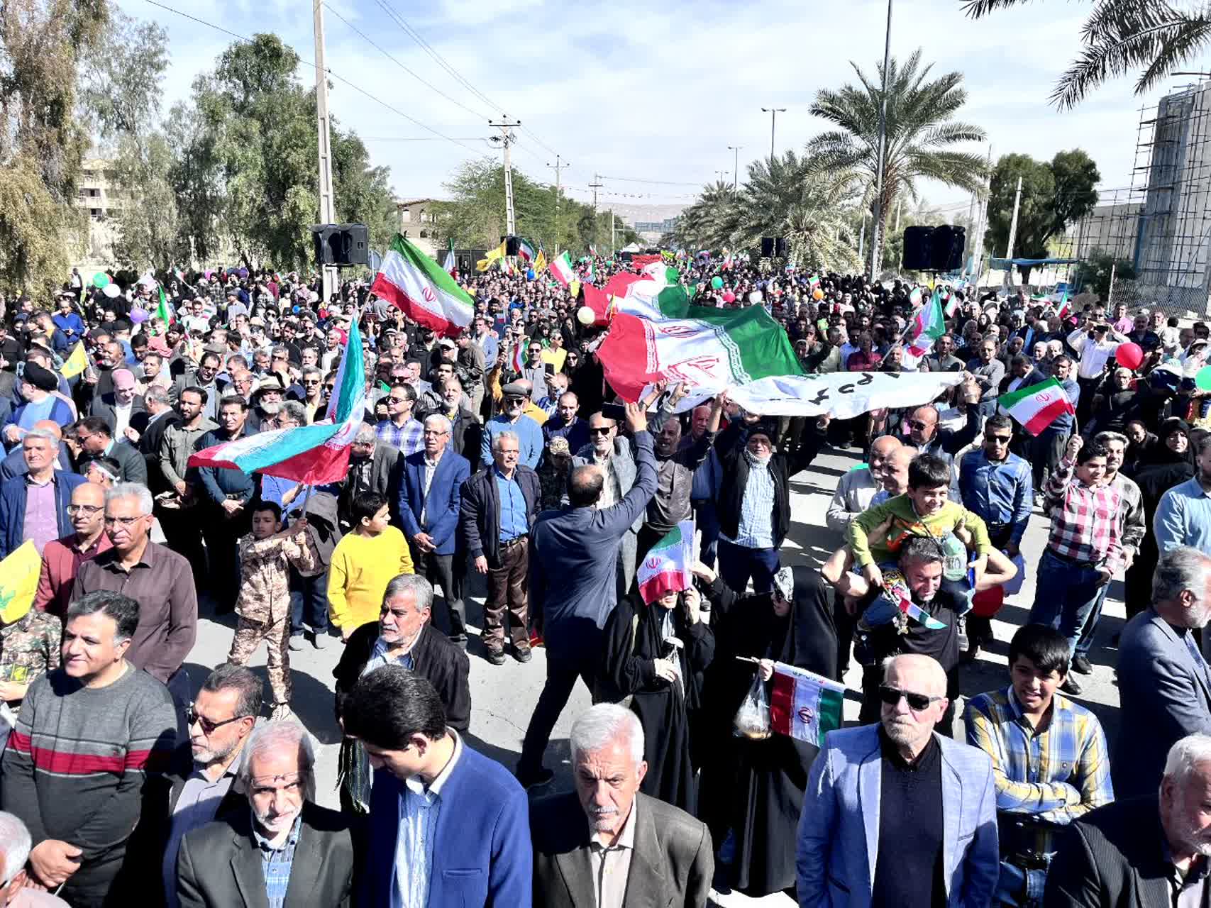 طول مسیر راهپیمایی با ریسه پرچمهای سهرنگ جمهوری اسلامی ایران و پرچمهای رنگی آذینبندی شده و بنرهایی حاوی تصاویر افتخارآفرینی جوانان و نوجوانان این مرز و بوم در عرصههای علمی، فرهنگی، ورزشی و سایر حوزهها جلوهای ویژه به فضای شهر بخشیده بود؛ فضایی که نماد تداوم حرکت بالنده انقلاب در گام دوم و امید به آیندهای روشنتر بود.