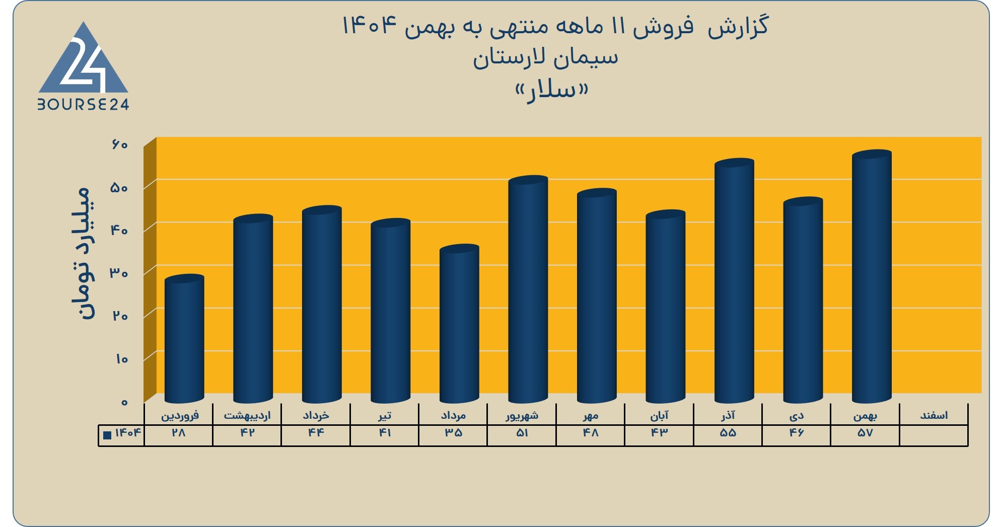 شرکت سیمان لارستان در گزارش عملکرد خود برای بهمن در مجموع درآمدی معادل 57 میلیارد تومان شناسایی کرده است. به گزارش میلاد لارستان به نقل از کدال نگر بورس24 ،…